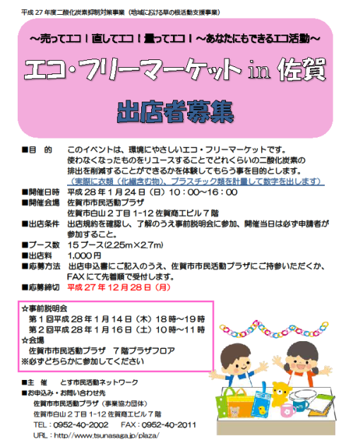 フリーマーケット出店者募集のお知らせ - エコピアなかがわ。