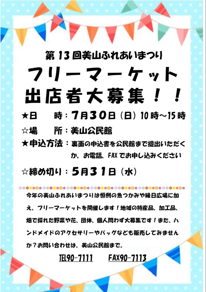 7月21日 日 お宝発見⁉️フリーマーケット開催‼️ 本日より出店者を募集します 詳しくはチラシをご覧ください。