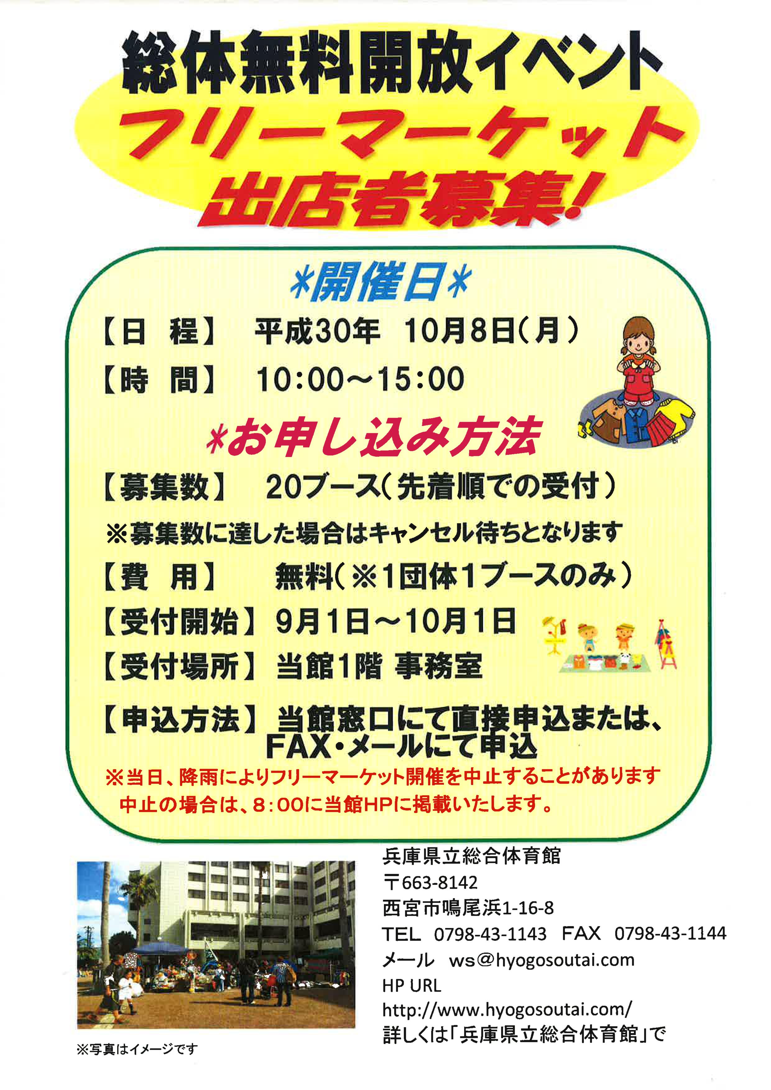 ☆ 体育の日 フリーマーケット出店者 募集 ☆ │ 兵庫県立総合体育館。