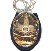 最強セット LAPD ロサンゼルス市警察 POLICE OFFICER ポリスバッジ ネックチェーン付きホルダー レプリカ 送料185円。