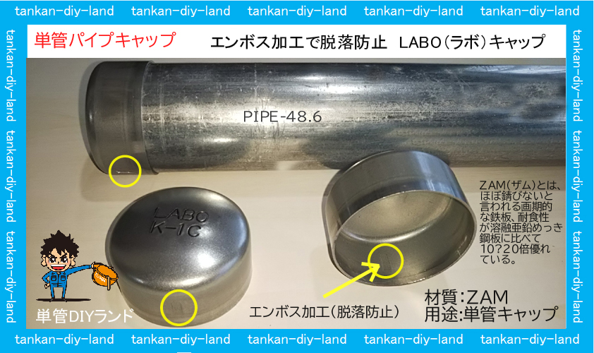 ほぼ錆びないと言われている鉄板、ZAM ザム 単管キャップK-1C tankan.tv単管パイプのDIYや組み方の学習なら単管DIYランド。