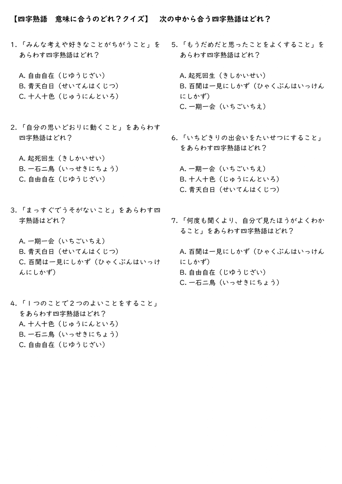 最も有名な四字熟語100選 意味解説付き– 四字熟語の百科事典。