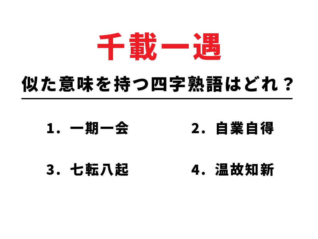 一生に一度しかない出会い」を四字熟語で言うと○期○○? 四字熟語クイズOggi.jp。