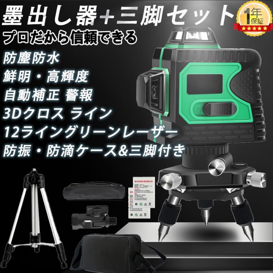 墨出し器 レーザー墨出し器 水平器 グリーンレーザー 高輝度 12ライン 屋内屋外兼用 建築 基礎 高精度 3x360° 30m作業範囲 レーザーレベル自動補正 DIY 傾斜 : 雑貨ショップK・T - 通販 - Yahoo!ショッピング。