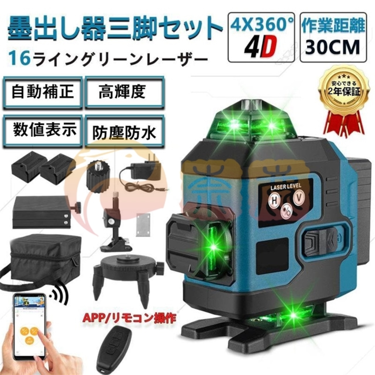 レーザー墨出し器 三脚付き 16ライン 水平器 バッテリー2個 収納ケース付き リモコン付き レーザー墨出し器 三脚付き 16ライン 水平器収納ケース付き Amazonレーザー墨出し器 グリーン レーザー 水平器 16ライン 4x360°グリーンレーザー墨出し器 フルライン 高輝度。