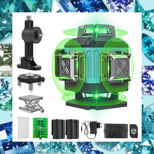 レーザー墨出し器、墨出しレーザー、4Dグリーンレーザー墨出し器、4x360°、水平器 レーザービルドとアライメント用、充電式バッテリー、リモコン、磁気回転スタンド レーザー安全基準: Amazonレーザー墨出し器、墨出しレーザー 、3Dグリーンレーザー墨出し器、3x360。