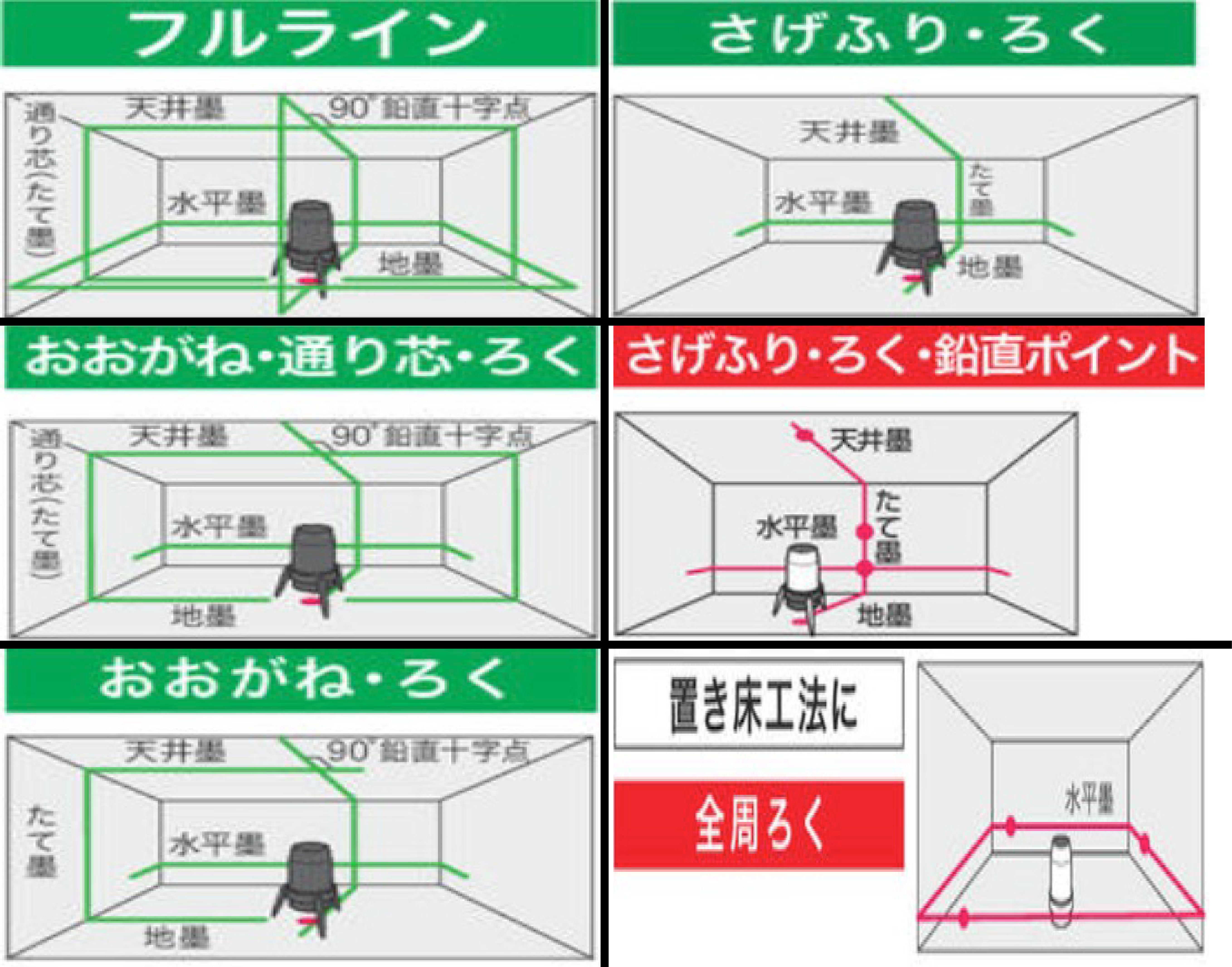 5ライン6点 グリーンレーザー墨出し器 水準器 水平器 測定器 墨。