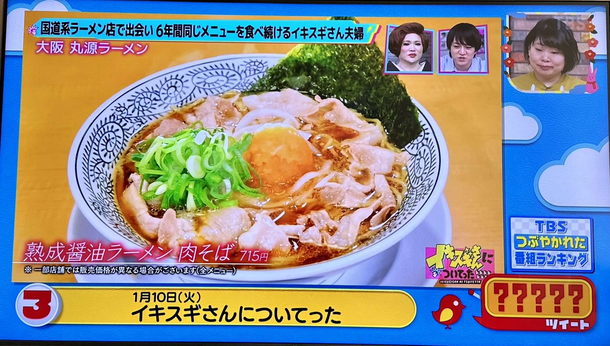 丸源ラーメン 公式on X: "TBS「 王様のブランチ」コーナー「 TBSつぶやかれた番組ランキング」で1 10に放送された「 イキスギさんについてったゴールデンSP」がランキング3位となったそうで『 丸源ラーメン』のシーンがダイジェストで出ました📺 👇見逃し配信は。