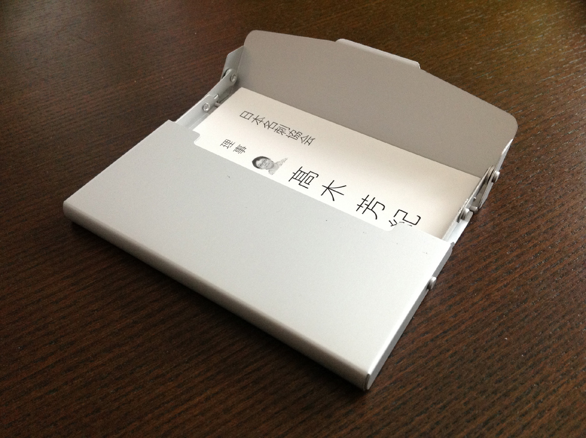セリア スライド式アルミ名刺ケース 小気味よい動きが100円とは思えない件文具朝活会・文具祭り主催者の文房具ブログ「BUNGULOG」。