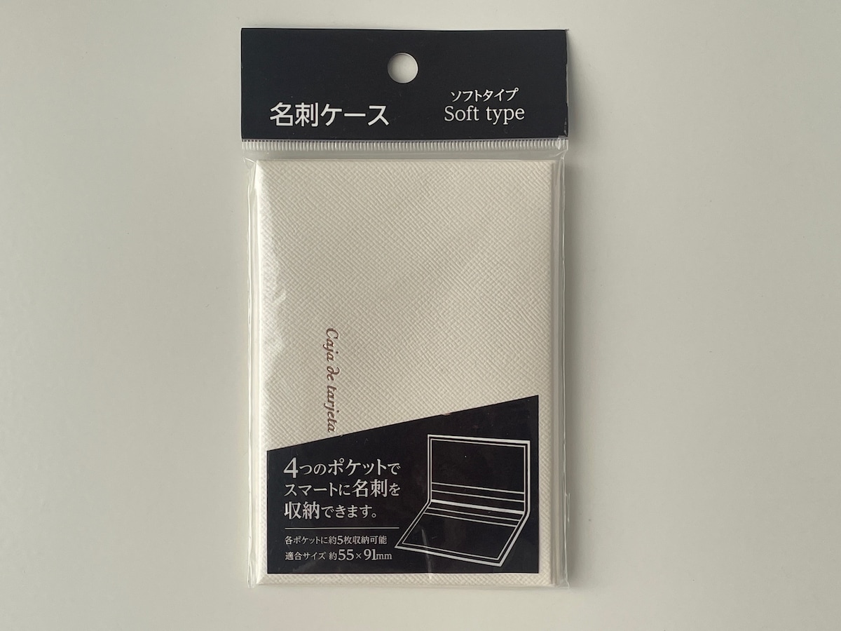 100均セリアのシンプルな名刺入れ ソフトタイプは15枚くらいまでの名刺を持ち歩くのによさげです。ちょっとお得に暮らしたい。