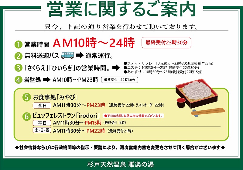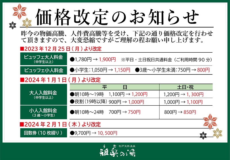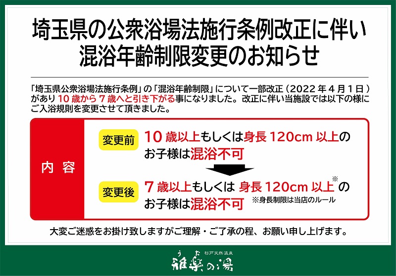 お知らせ杉戸天然温泉 雅楽の湯うたのゆ埼玉の日帰り温泉杉戸町。