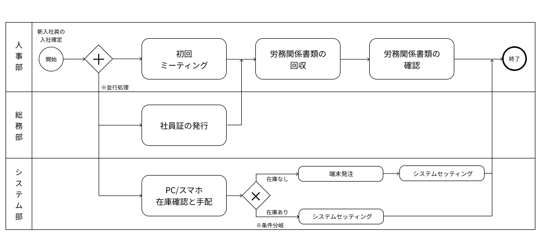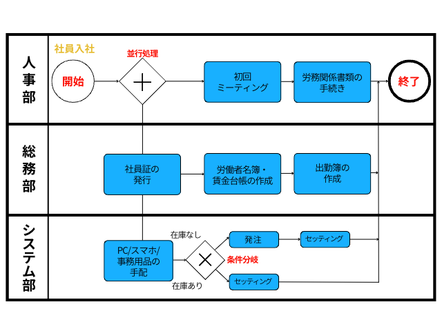 フローチャートでの並列の書き方ビジネスプロセスの場合 - Kaizen Penguin。