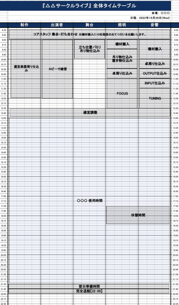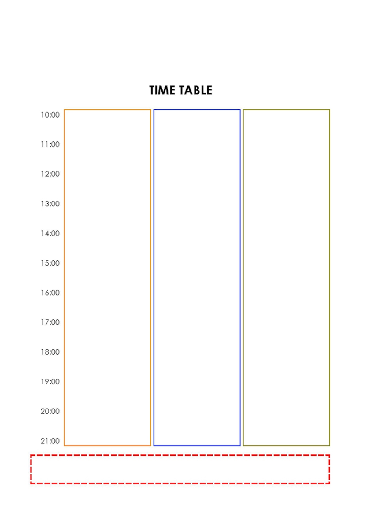 イベンター用 自主企画にも使える「書き込めるタイムテーブル用紙 スケジュール表 」※無料ダウンロード可。