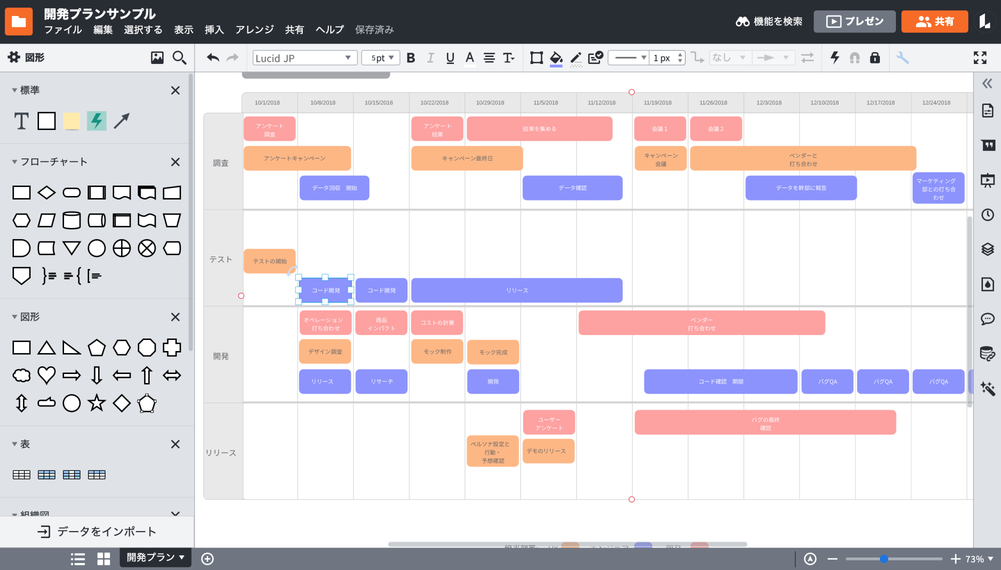 タイムスケジュールアプリでタイムスケジュール表をテンプレートで簡単に作成Lucidchart。