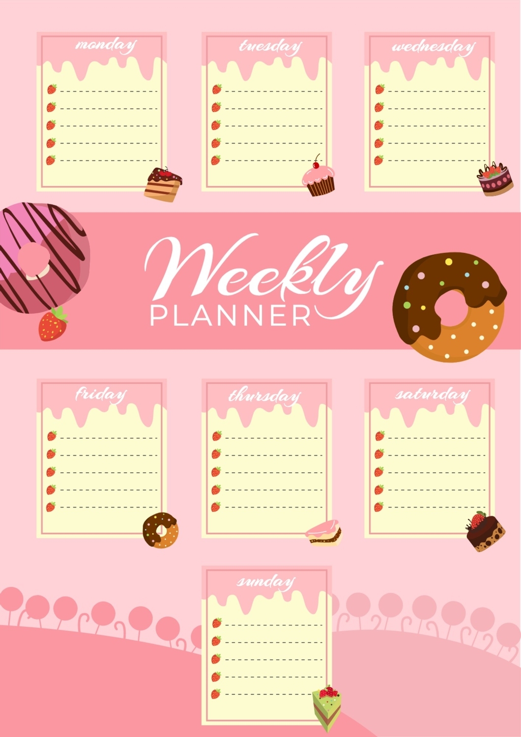 かわいい予定表の無料スケジュールテンプレート 3803 - デザインAC。