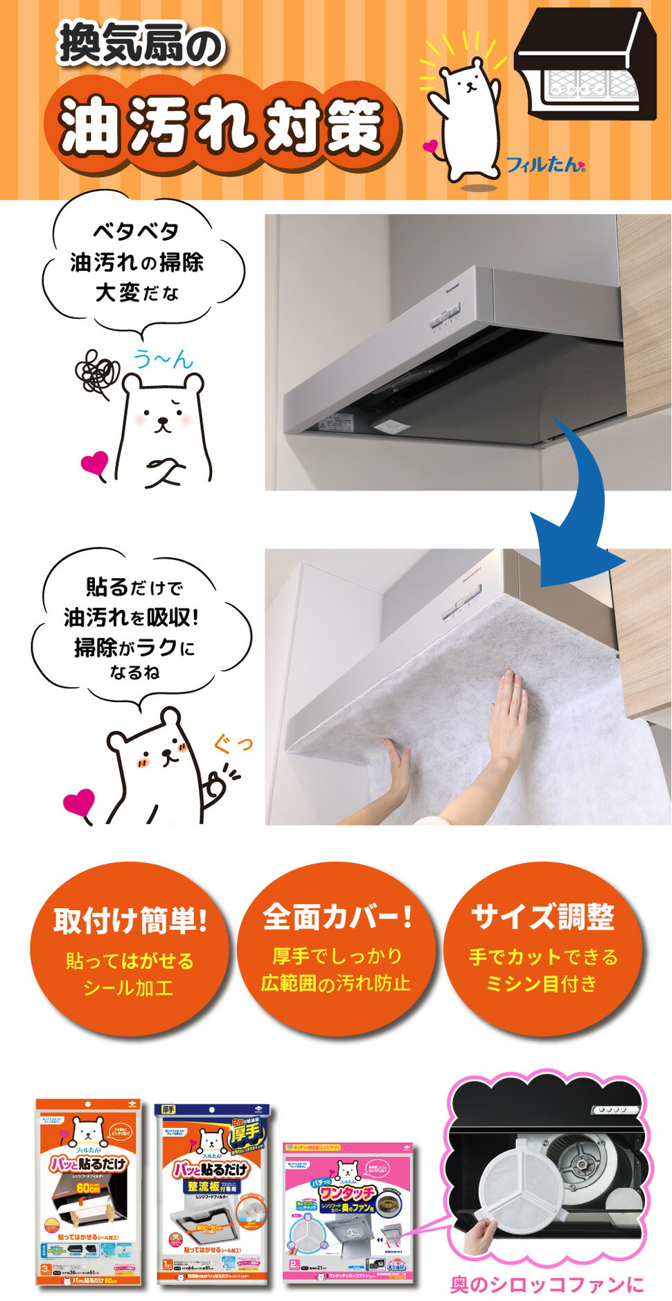 キッチン換気扇の汚れを防止『パッと貼るだけスーパーフィルター30cm』を新発売NEWSCAST。
