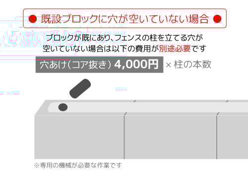 フェンスの設置するときのコア抜き工事って? ブロック上へのフェンス柱工事- エクステリアのある暮らしブログ。