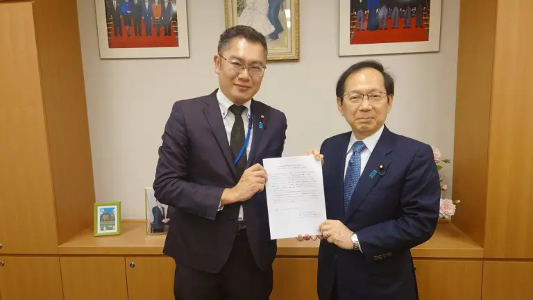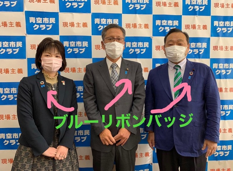 自公が足並みを揃える、ブルーリボン着用。公明党、竹内譲拉致対策委員長、共同声明に署名。ブルーリボンを守る議員の会。