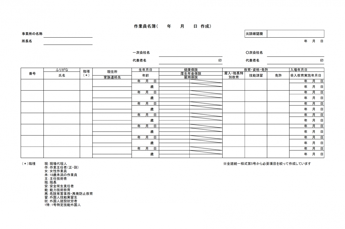 全建統一様式 改訂5版の作業員名簿はこうなった!。全建統一様式とは。