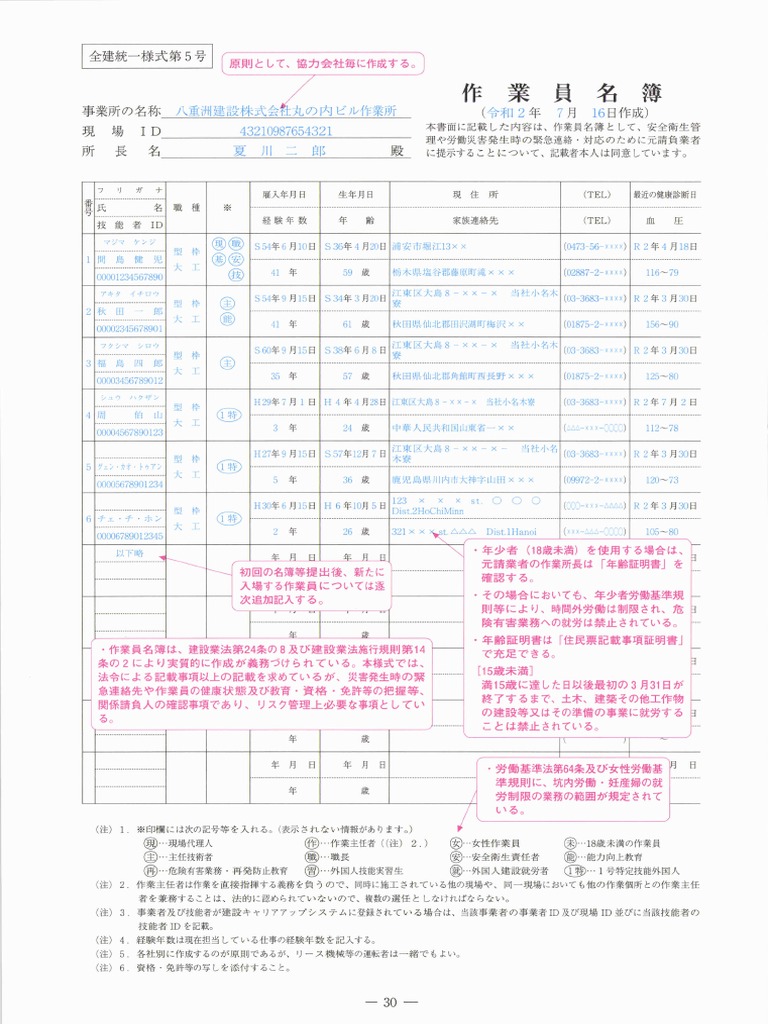 作業員名簿の書き方と記入例を徹底解説!安全管理のポイント現場ポケット。