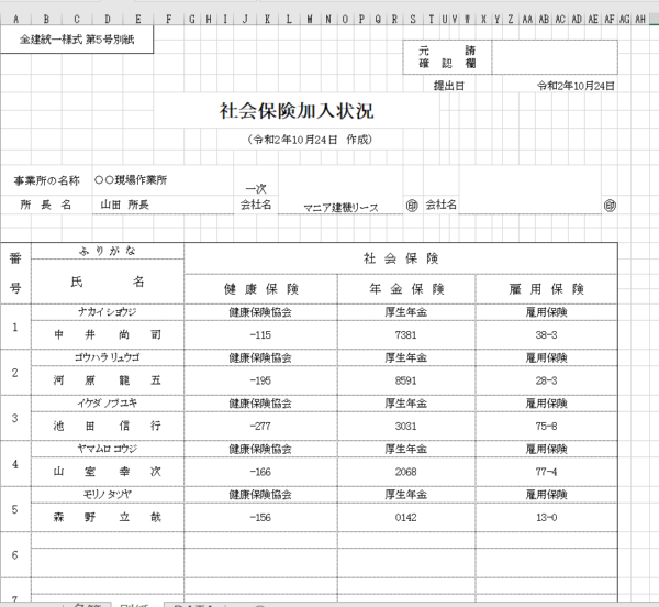 全建統一様式 作業員名簿等に記載すべき社会保険番号や事業所番号について - FLAT 社会保険労務士 行政書士事務所。
