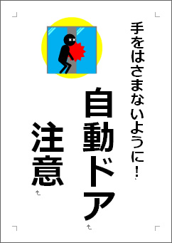 自動ドア注意の張り紙 Office Word PDF形式Wordで張り紙。