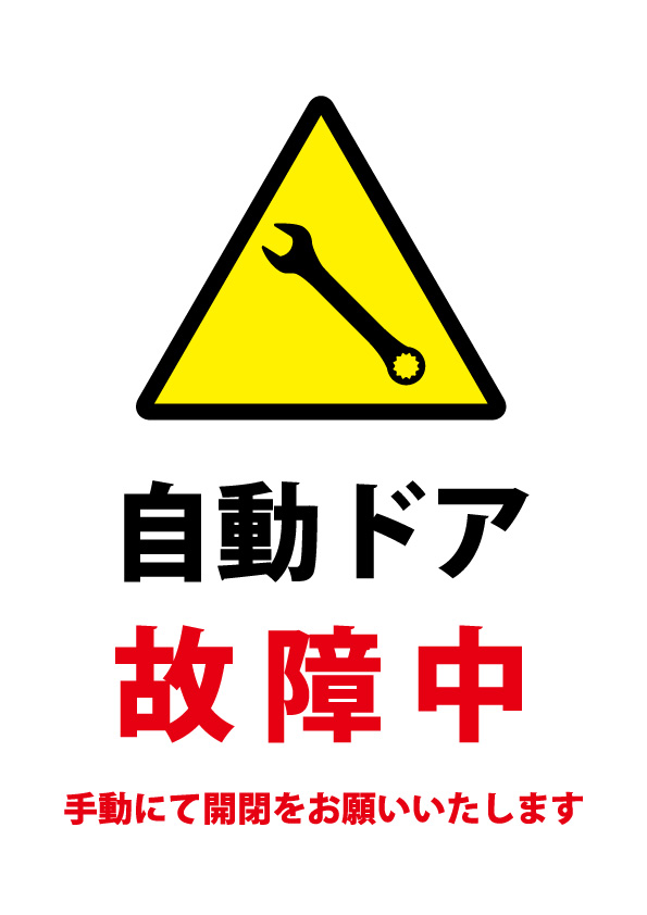 自動ドア故障中 手動開閉 の注意貼り紙テンプレート無料・商用可能 注意書き・張り紙テンプレート ポスター対応。