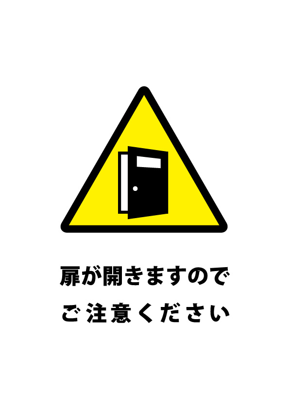 ドア・扉が急に開くおそれを伝える注意貼り紙テンプレート無料・商用可能 注意書き・張り紙テンプレート ポスター対応。
