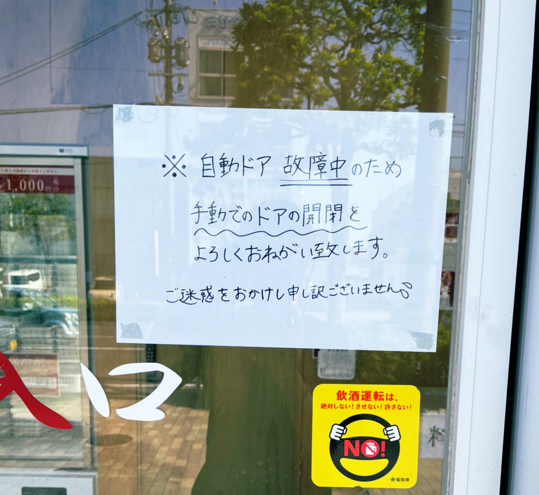 松浦紙器製作所 紙季彩々-shikisaisai-☆10 23-27柏髙島屋文房具マルシェ on X: "久しぶりの晴天になりました☺️今朝出社したら、こんな張り紙が 自動ドアが故障してしまった様子😓 原因の部品は突きとめたようです。 ご来社される方、しばらく手動ドアとなります。ご。