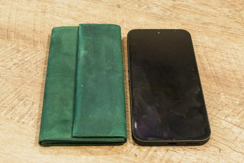 中古革で作るスマホが入る長財布Step Up Series新宿スマホサイズの。