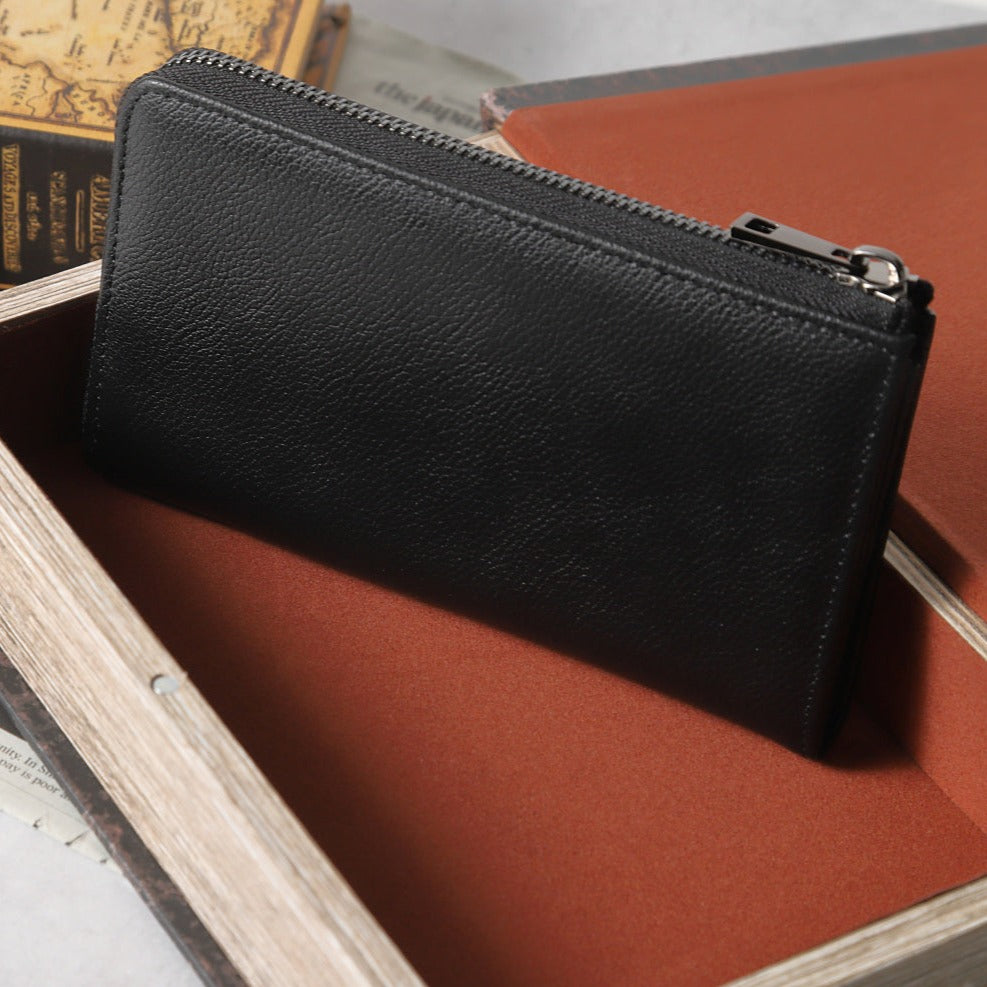 楽天1位 長財布 メンズ 小さい 長財布 小さめ 短い 短め 大人 牛本革 コンパクト 薄い 薄型 財布 革 牛革 本革 大容量 小銭入れL字ファスナー コインケース カードケース レザー スキミング 防止 ミドルウォレット 外ポケット シンプル 箱 黒 おしゃれ クリスマス ギフト。