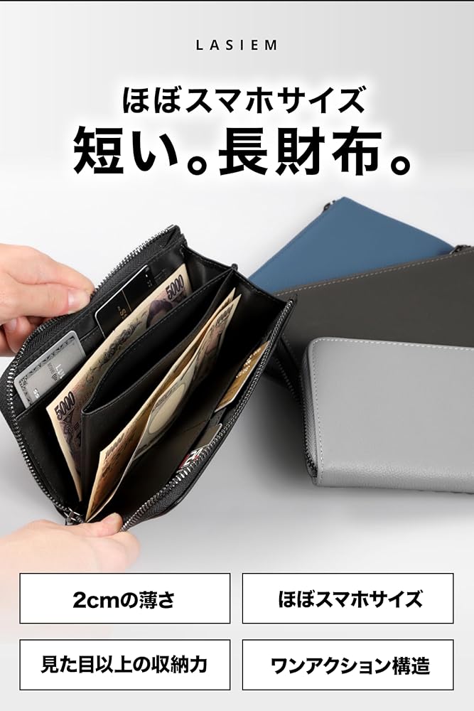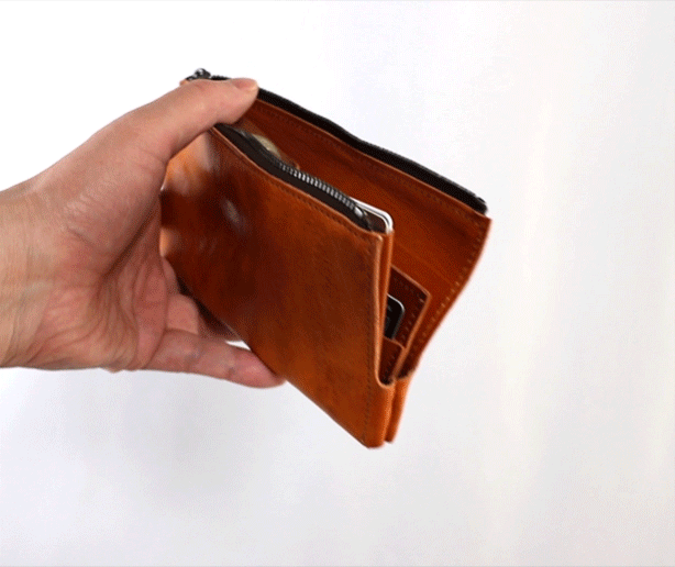 スマホサイズの薄い極短・長財布。一方向の簡単ファスナー。お札を噛まない新構造 – トキトマデザイン。