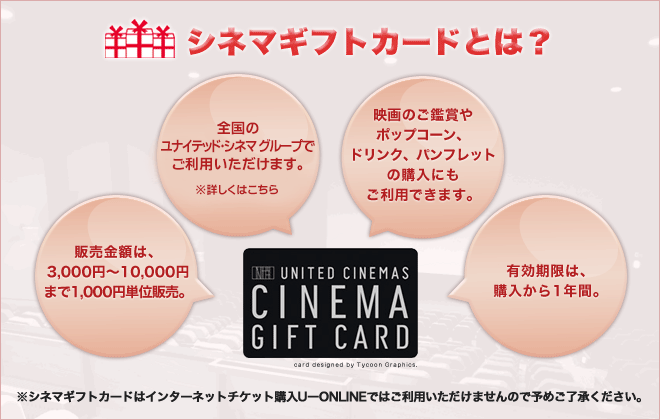 大切な人へ映画の感動を贈りませんか?シネマギフトカード、絶賛発売中。