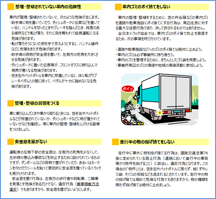交通安全のポイント・車内の整理整頓や車両の清掃 - 総合保障制度推進事務所。