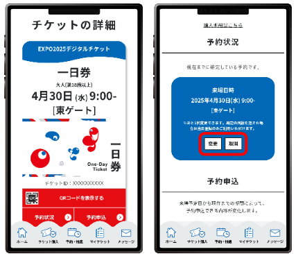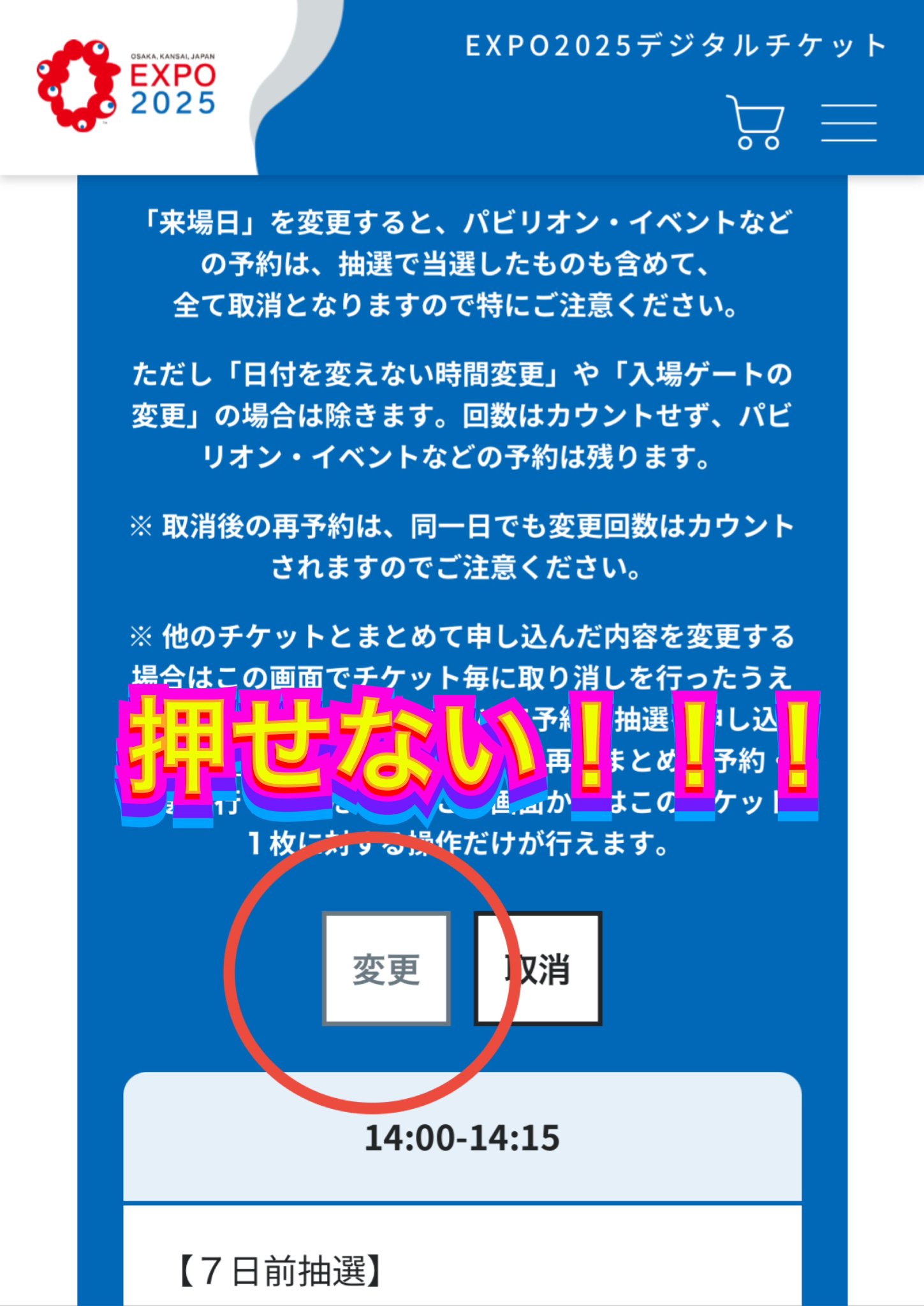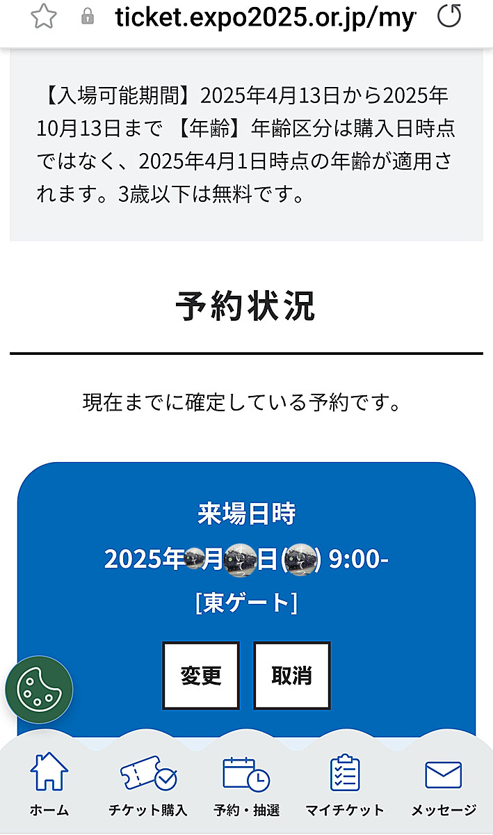 大阪万博のチケットの入場ゲート変更方法・手順について デジタルチケットサイトで可能。