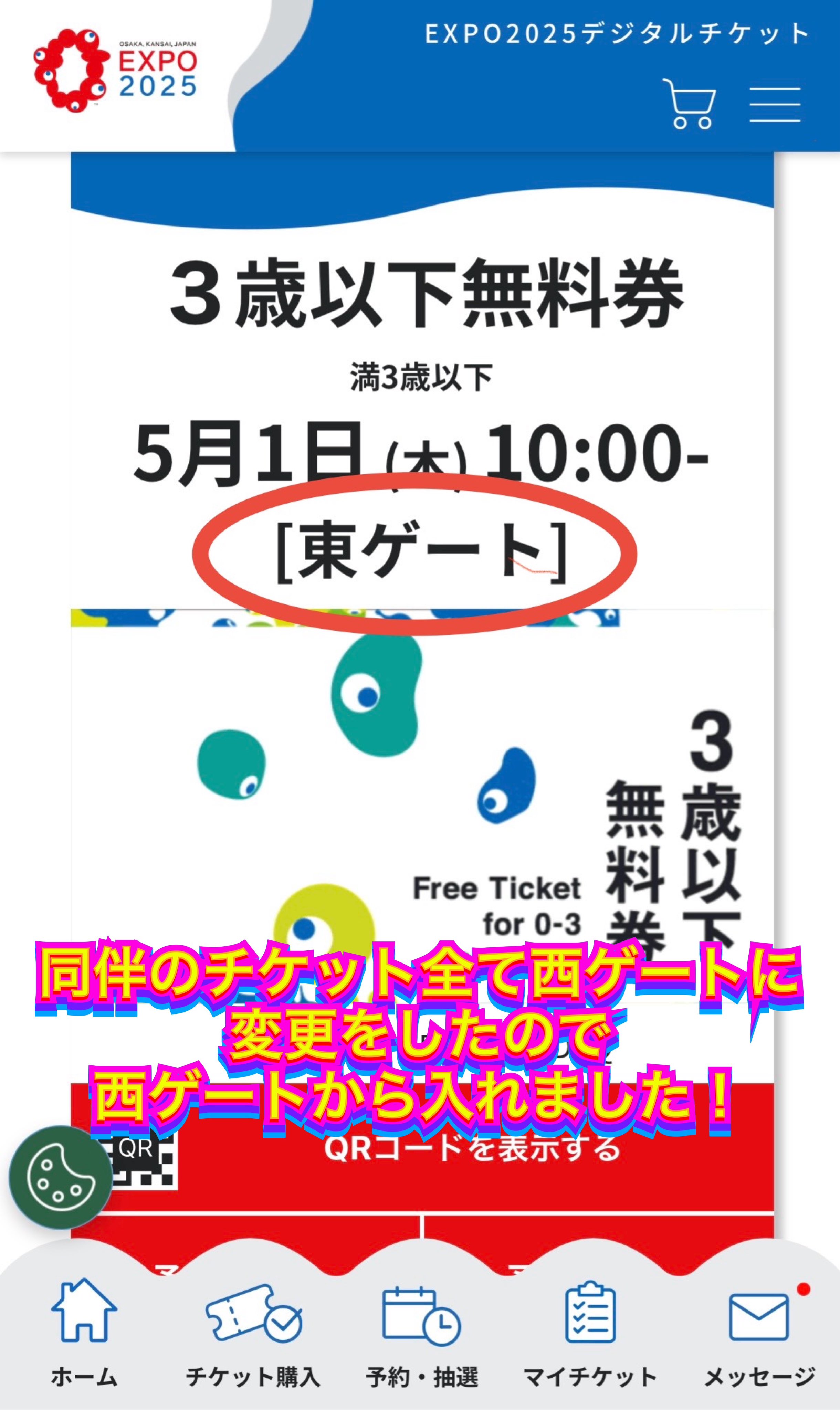 いす@ixion on X: "大阪万博EXPO2025の3歳未満チケットですが、当日に入場ゲート変更になったので同伴の大人のゲート変更 を行ったのですが、3歳未満チケットは変更できず。 受付にて問い合わせしたところ、そのまま入場可能でした。 今回のパターンは当日変更の同日同。
