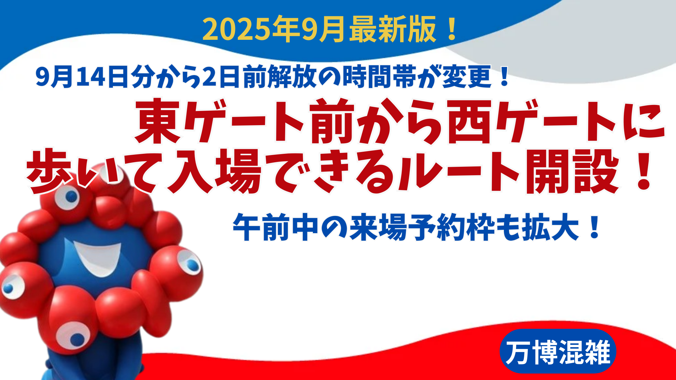 大阪・関西万博 9月14日分から2日前解放の時間帯が変更!7時~8時に!東ゲート前から西ゲートに歩いて入場できるルート開設!午前中の来場予約枠も拡大!小顔&骨盤矯正サロンkinoe。