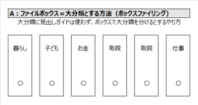 家庭の書類整理 大分類をファイルボックスでわけるかどうかについて片づけものさし。