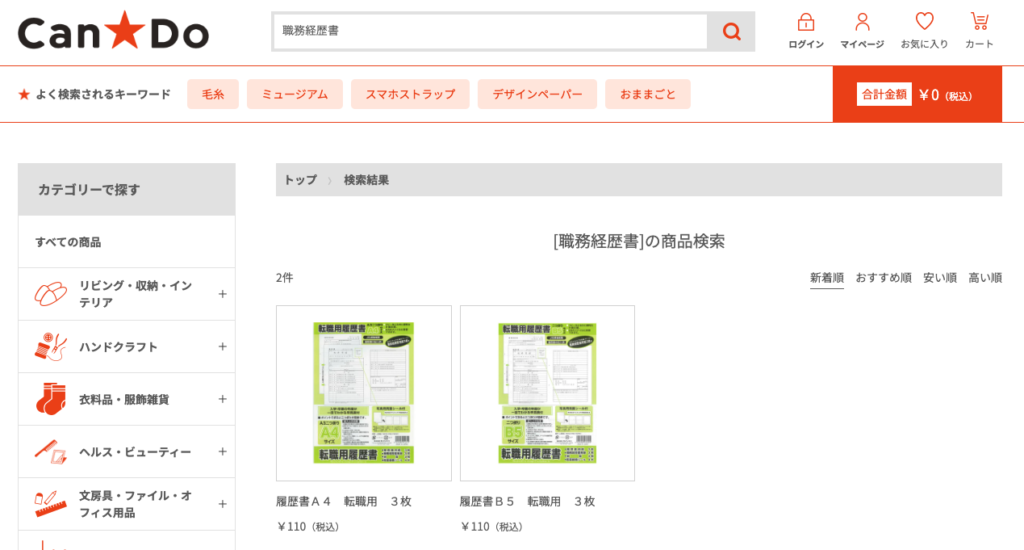 履歴書通販Can☆Do キャンドゥ ネットショップ。