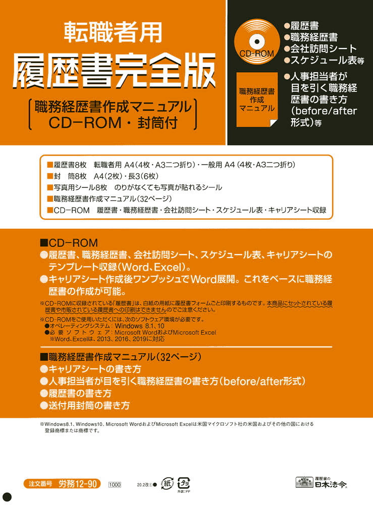 転職者用履歴書 完全版日本法令オンラインショップ。