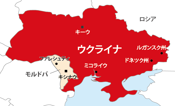 ウクライナの州境のある地図、近隣国、日本語の地名 Stock VectorAdobe Stock。