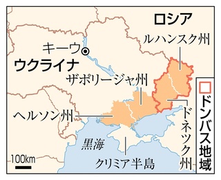 ウクライナ・ドンバス地域 ルハンスク、ドネツク州 、ザポリージャ州、ヘルソン州 - 米ロ首脳15日会談へ ウクライナ停戦へ侵攻後初ゼレンスキー氏「領土割譲」警戒 - 写真・画像 1 2西日本新聞me。
