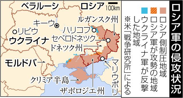 ウクライナ軍、東部主要都市から撤退 ゼレンスキー氏「戻ってくる」:朝日新聞。