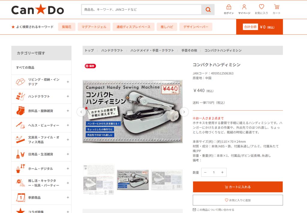 ハンディミシンはどこで売ってる?イオン、キャンドゥで買える?販売店はココ!Engei-World。
