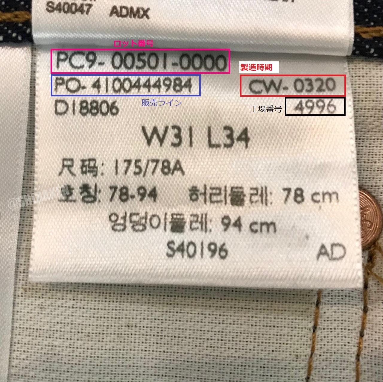 リーバイス 内タグで製造年月を判別する方法 種類別の見方。