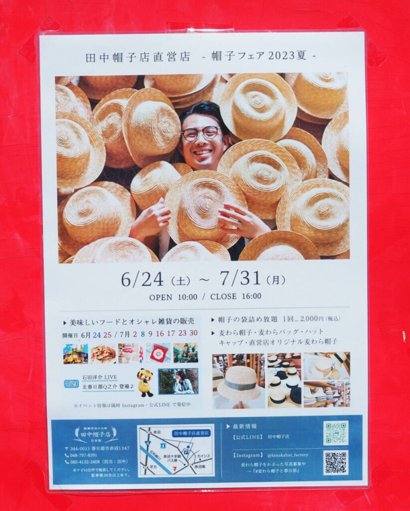 春日部市 春日部の夏といえば・麦わら帽子! 田中帽子店の -帽子フェア 2025 夏- は6月13日からです!号外NET 春日部市。
