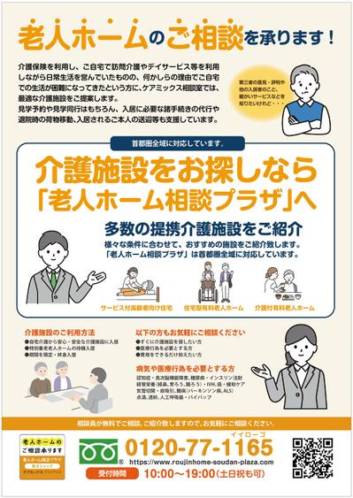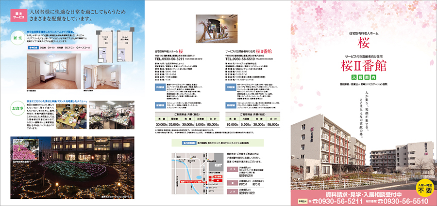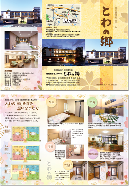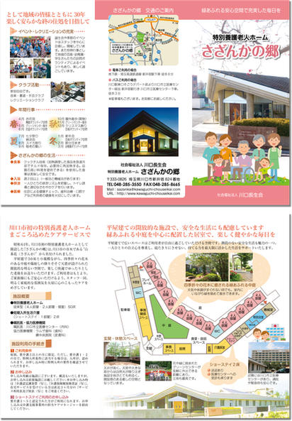 制作事例 介護施設・老人ホーム案内リーフレット:A4 三つ折り - 印刷デザイン本舗 さいたま市 浦和・大宮。