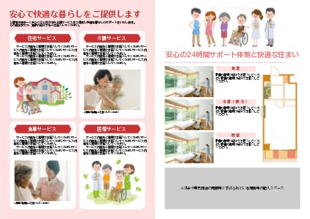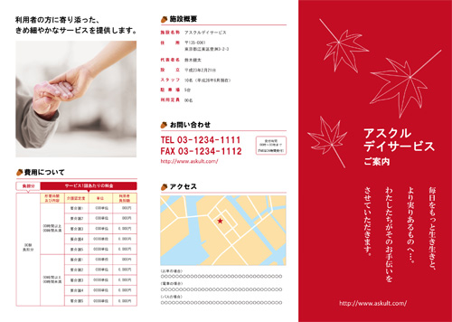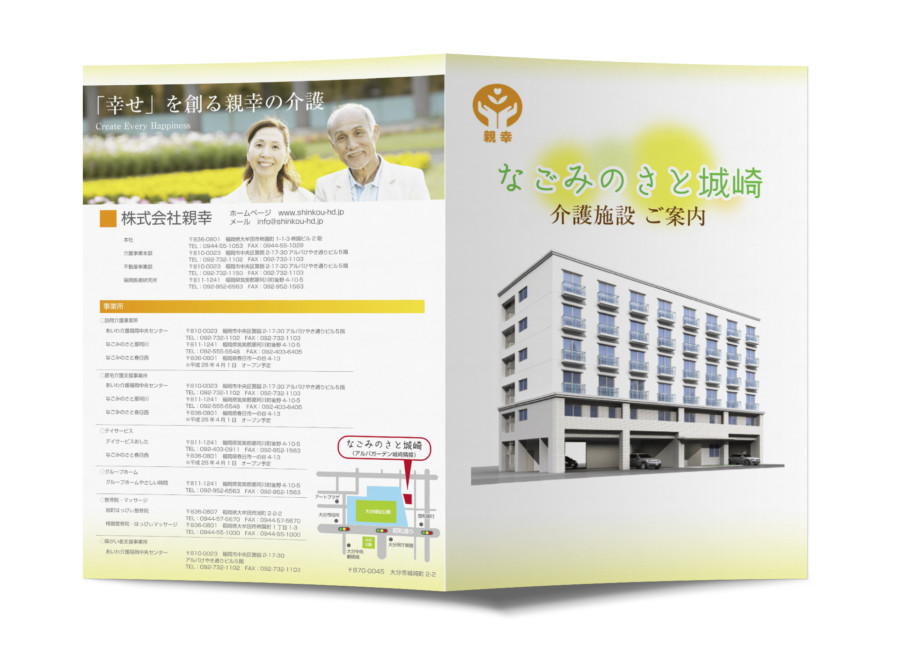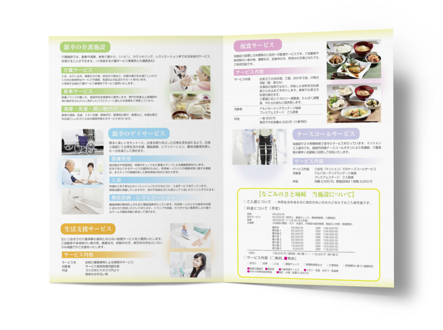 制作事例 介護施設 リーフレット:A4 三つ折り - 印刷デザイン本舗 さいたま市 浦和・大宮。