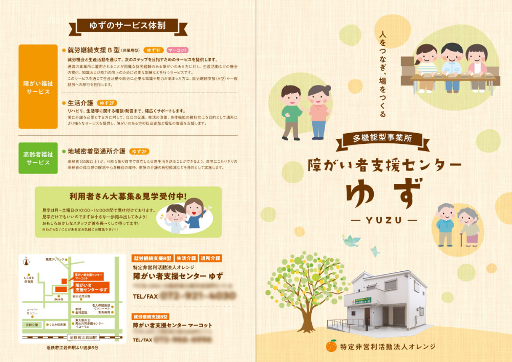 築上町の介護施設 パンフレット デザイン・印刷例 築上郡のパンフレット制作 - 北九州市 デザイン作成・印刷 ウェイブ。