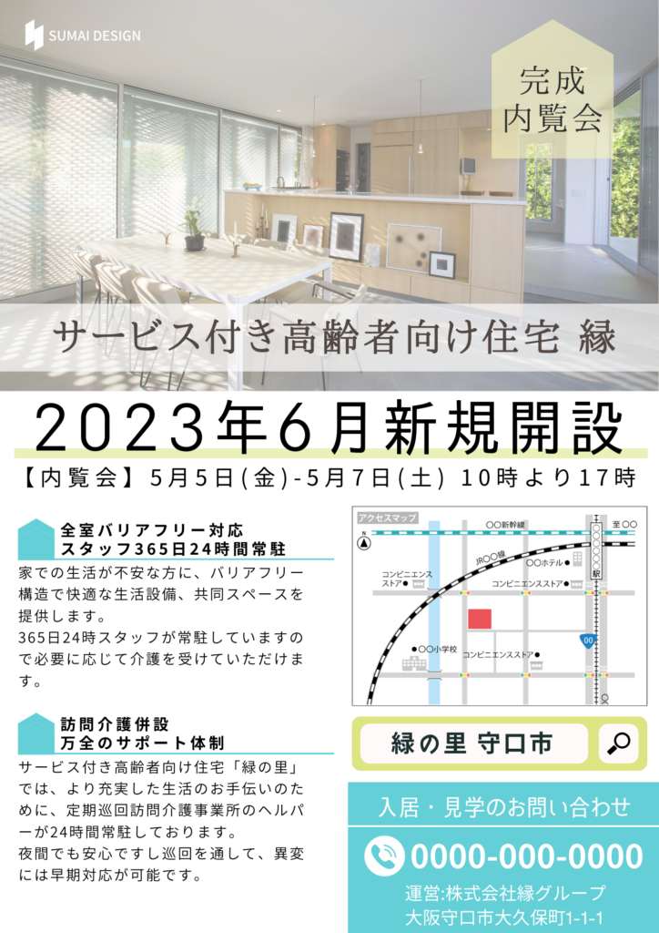 福祉施設案内_裏面B_16043のパンフレット無料デザインテンプレート印刷のラクスル。